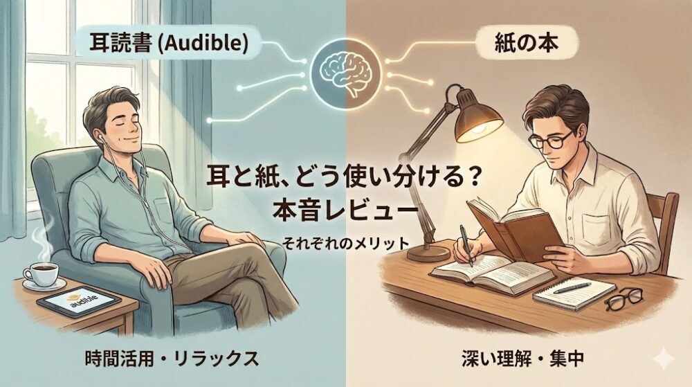 【30日間無料】Audibleを試して感じた本音。耳読書 vs 紙の本、YouTube要約との決定的な違いとは?