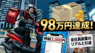 副業ノウハウ 【収益公開】都内会社員が副業『出前館』で98万円稼いだ全記録!時給2,000円のリアルと引退理由 都内会社員が副業の出前館で1年7ヶ月稼働し、総額98万円を稼いだ収益データを完全公開。125ccバイクでの時給2,000円のリアルな実態と、稼げるのにヘルニアで引退しストック型ビジネスへ移行した理由を本音で綴ります。 副業ノウハウ