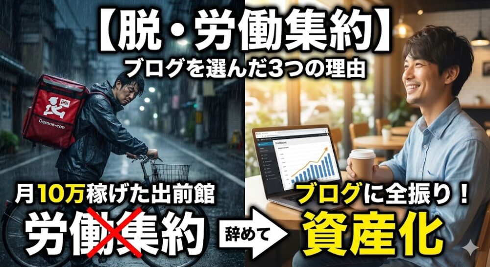 なぜ、すぐに稼げる出前館を辞め、あえてすぐには結果が出ないブログを選んだのか。 そこには、体を壊して初めて気づいた「労働収入の限界」と、未来への戦略がありました。