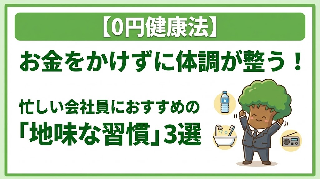 この3つを意識するだけで、体調が整い、仕事の生産性が上がり、無駄な出費も減ります。 資産形成を目指す私たちにとって、これほどコスパの良い投資はありません。