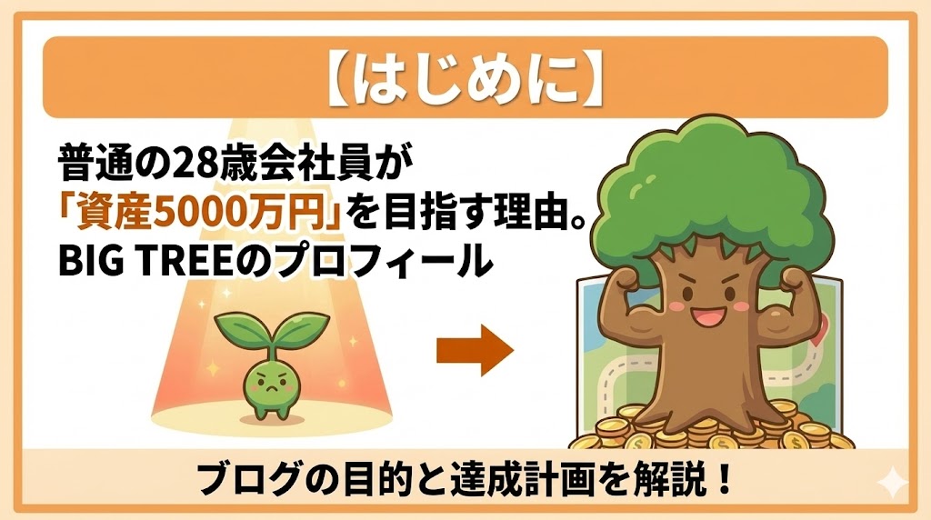 【自己紹介】普通の28歳会社員が「資産5000万円」を目指す理由。BIG TREEのプロフィール